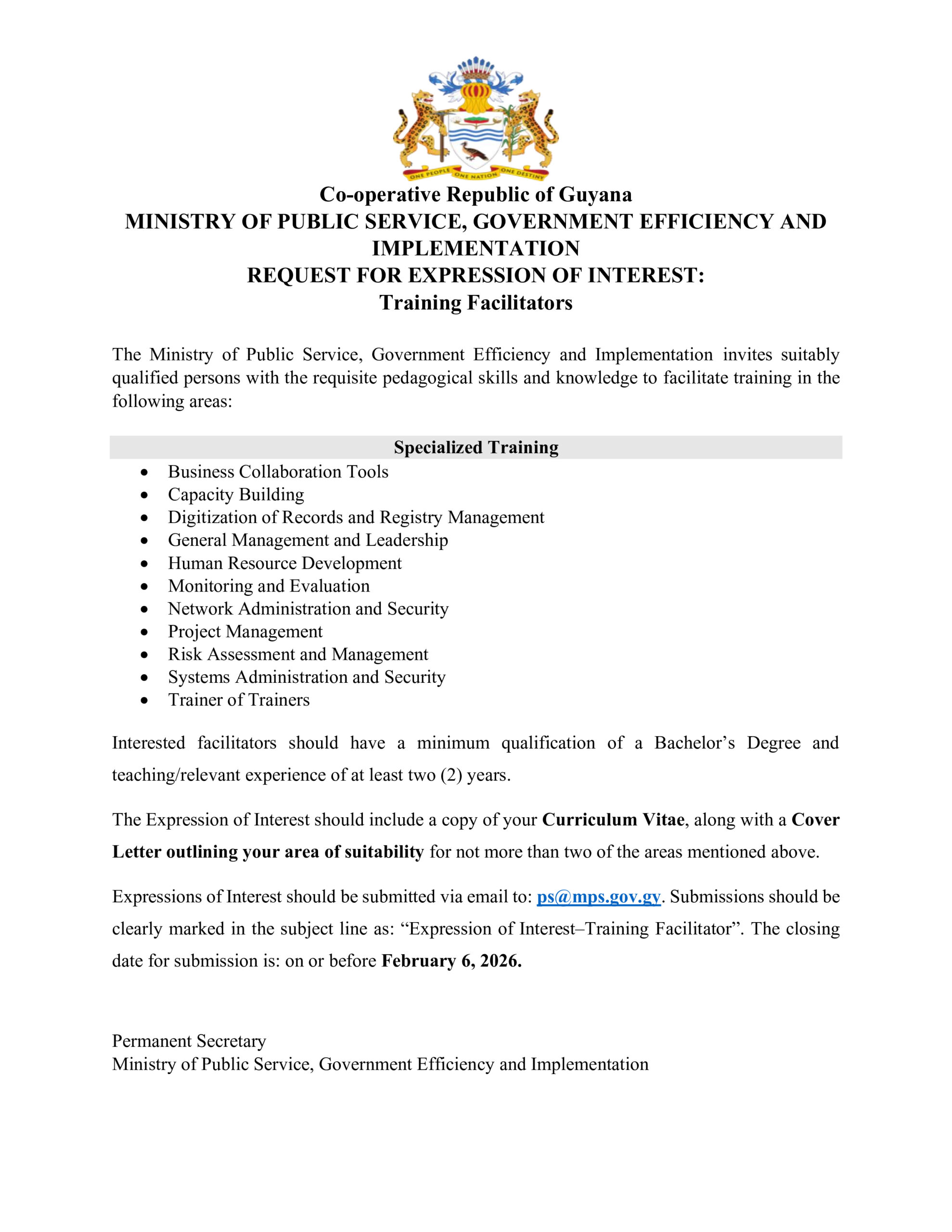 REQUEST FOR EXPRESSION OF INTEREST